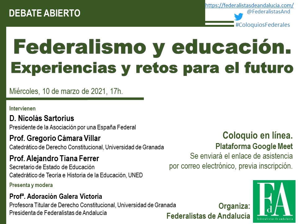 El martes 9 de febrero, a las 18h, la Associació de Federalistes de les Illes Balears organiza el webinar «Soluciones con el federalismo social» en el que intervendrán nuestros socios la Profª Adoración Galera y el Prof. Antonio Pérez Miras.